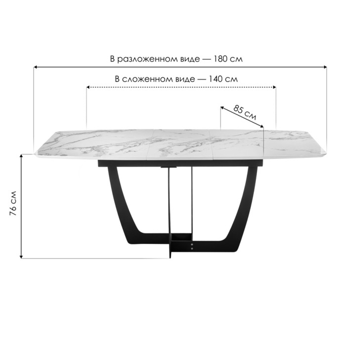 Технические характеристики Стол деревянный Миссандея металл, графит/белый мрамор 85x140x76 см