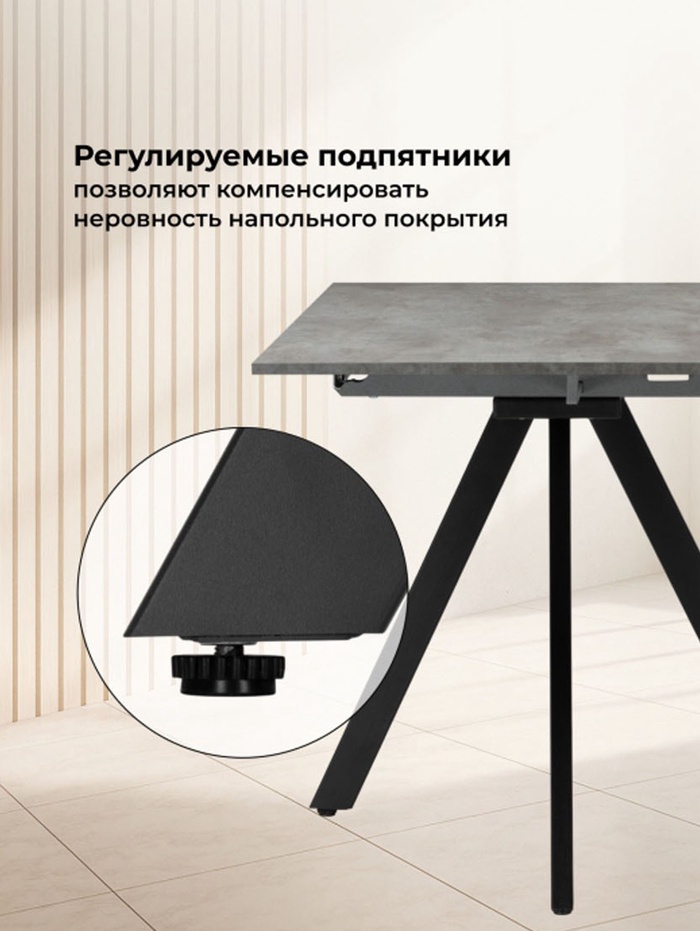 Технические характеристики Стол кухонный деревянный раздвижной «Райн», 1160(1600)×770×770 мм, цвет цемент/чёрный