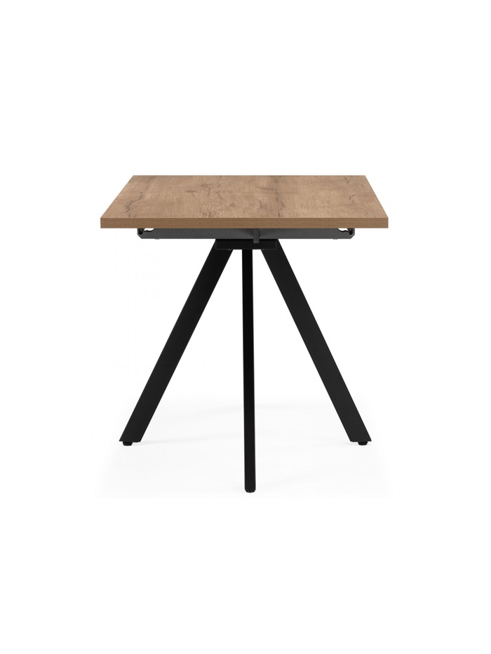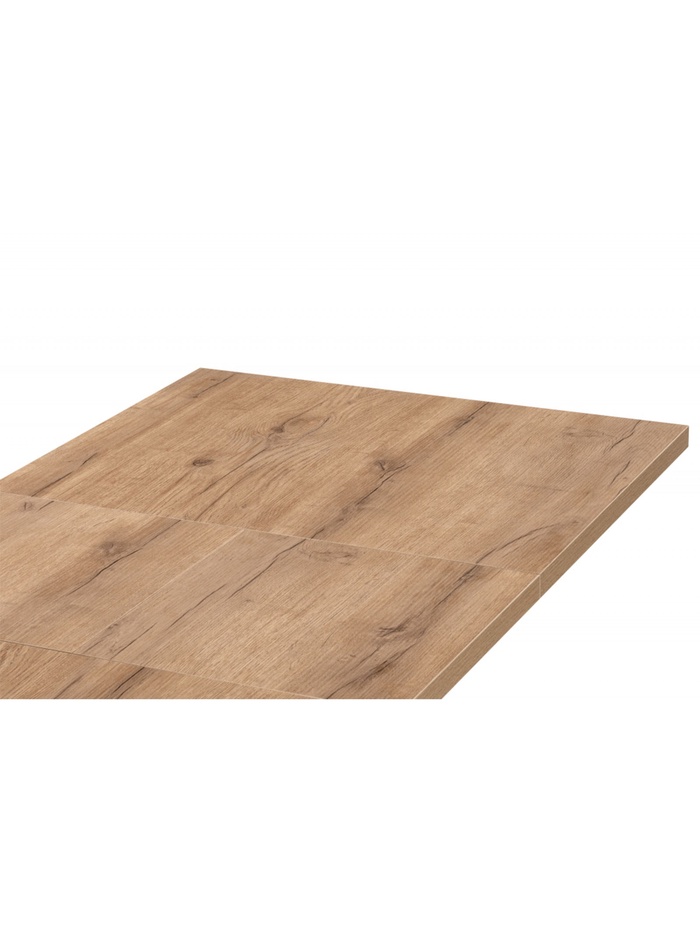 Элегантное и функциональное решение для современной кухни или столовой. Стол выполнен в стильном сочетании цветов: столешница с тёплой текстурой дуба табачного и строгие чёрные металлические ножки создают выразительный контраст, придающий интерьеру уют и современный характер.