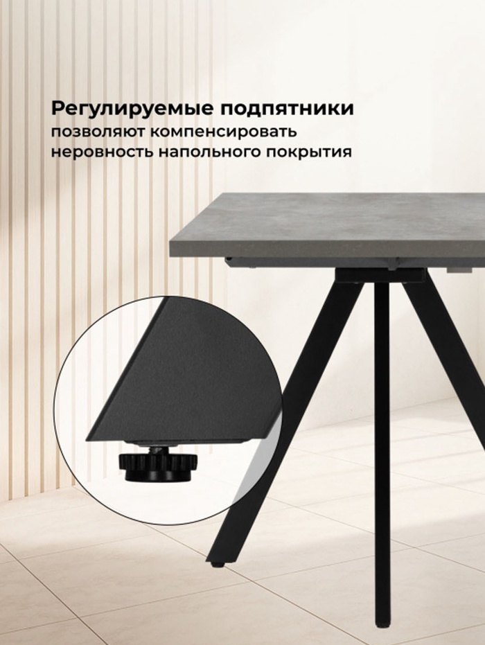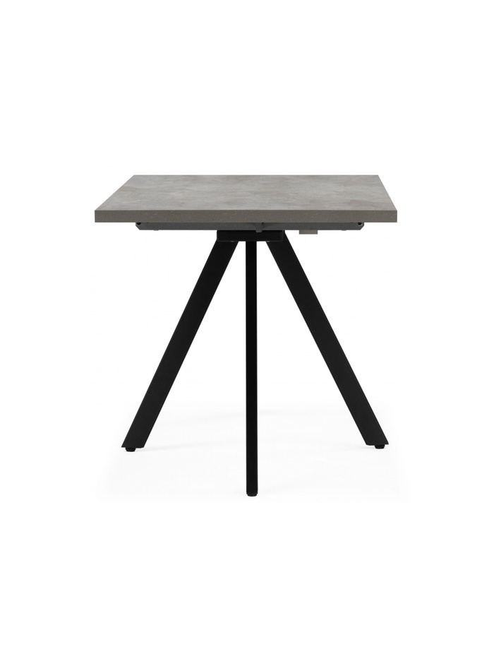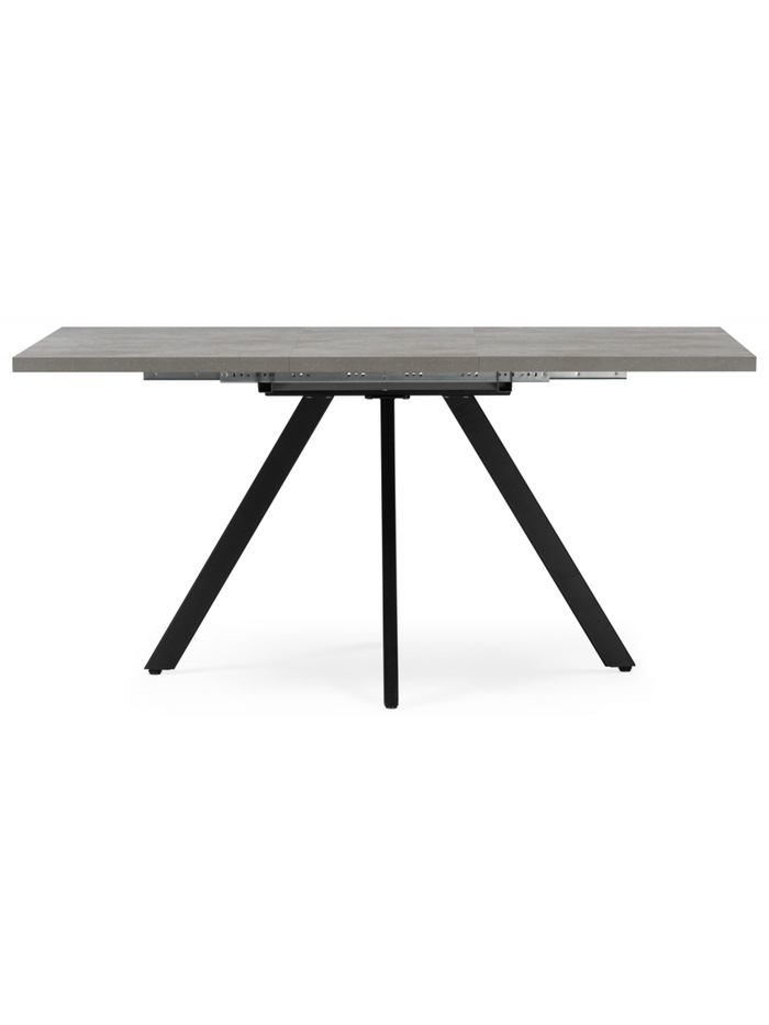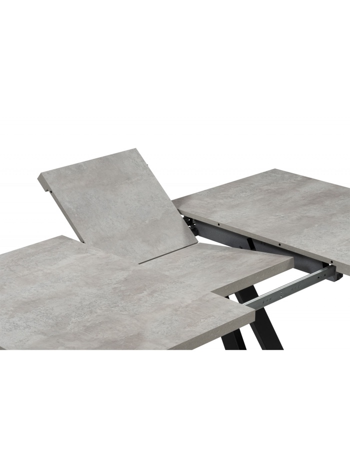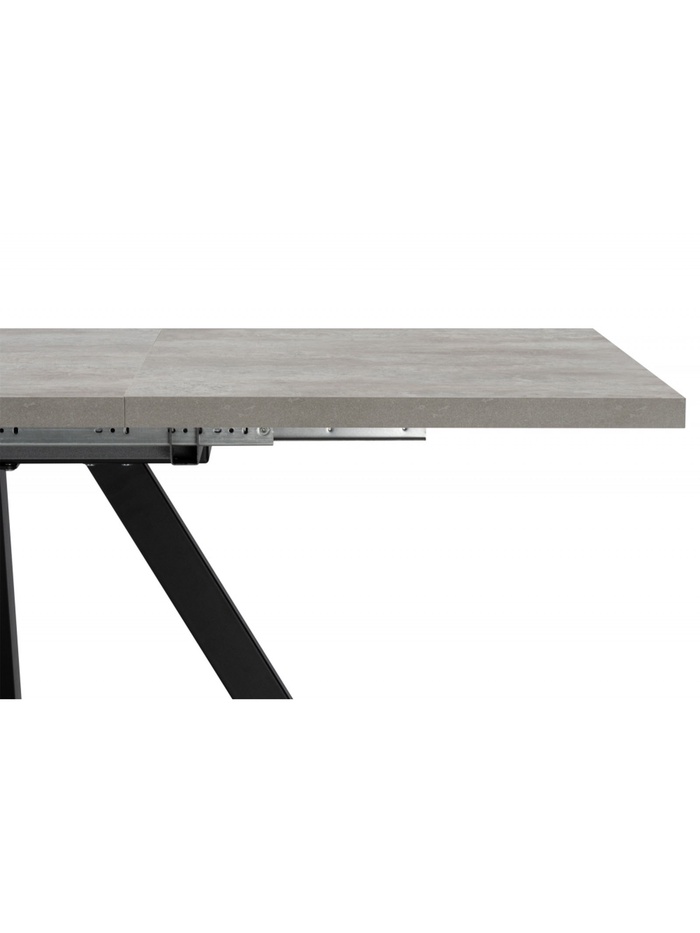 Лаконичное и функциональное решение для кухни или столовой в современном стиле. Стол выполнен в сдержанном сочетании оттенков: столешница с фактурой цемента привносит в интерьер индустриальную эстетику, а строгие чёрные металлические ножки добавляют конструкции графичность и устойчивость. Прямоугольная форма столешницы обеспечивает удобство размещения и позволяет эффективно использовать пространство. Благодаря раздвижному механизму стол легко трансформируется.
