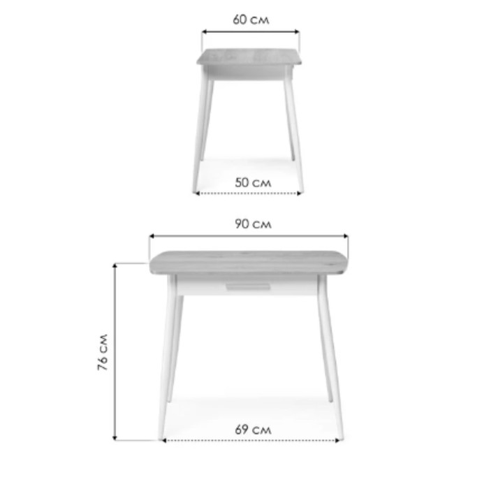 Технические характеристики Стол деревянный Ревари металл, эврика/белый 60x90x76 см
