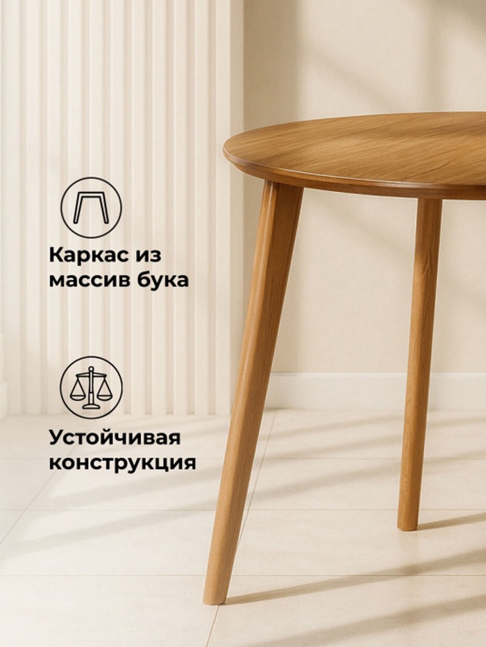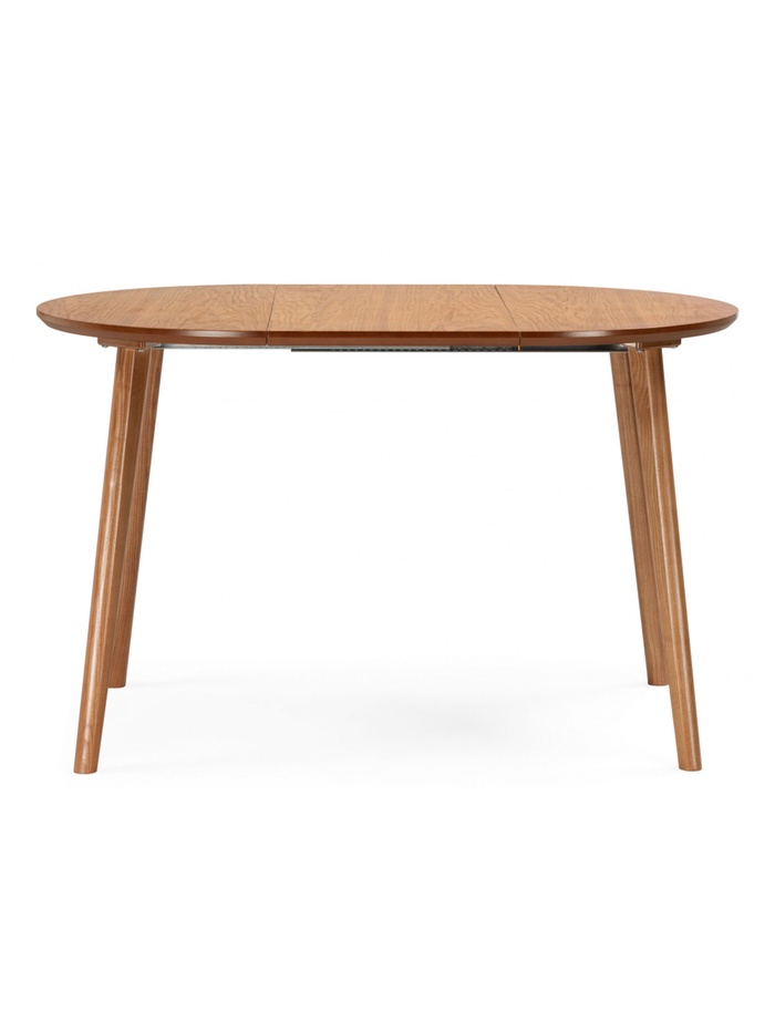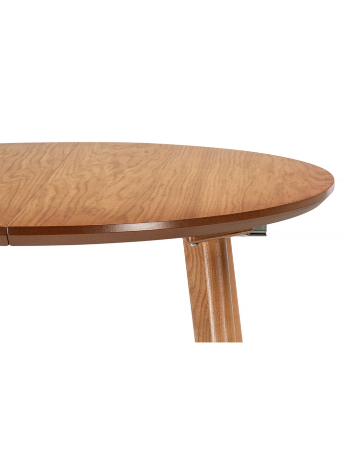 Светлое и функциональное решение для уютной кухни или столовой. Стол выполнен в тёплом оттенке ольха с натуральным шпоном, который привносит в интерьер мягкость, природную свежесть и естественную красоту древесной текстуры. Круглая форма столешницы создаёт камерную, уютную атмосферу и располагает к душевному общению. Благодаря раздвижному механизму стол легко трансформируется.
