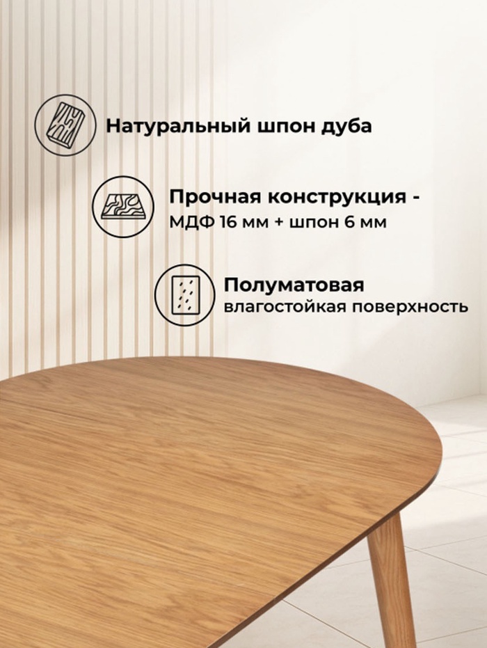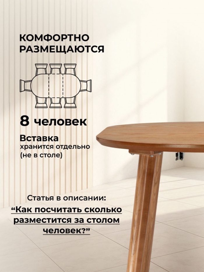 - Уникальная трансформация: раздвижной механизм позволяет трансформировать компактный круглый стол в просторный овальный стол, легко адаптируя его под количество гостей.
