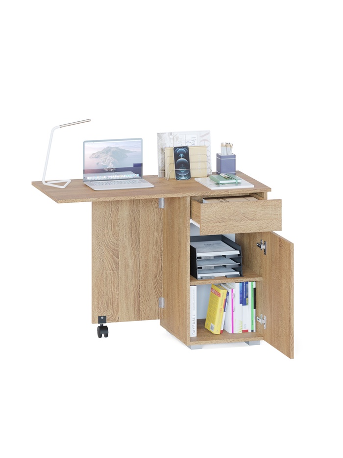 Раскладной стол СП-25 — компактное и практичное решение для организации рабочего пространства в небольших помещениях. Модель сочетает функциональность тумбы и полноценного рабочего стола, позволяя эффективно использовать доступное пространство.