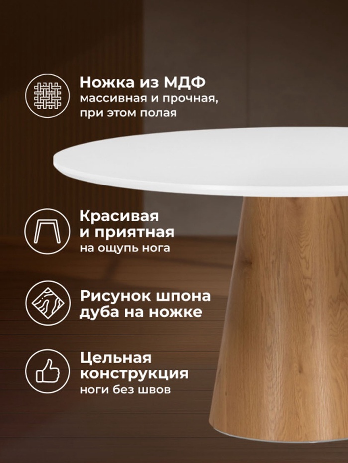 Стол кухонный Huge, 1200×1200×750 мм, цвет белый/коричневый