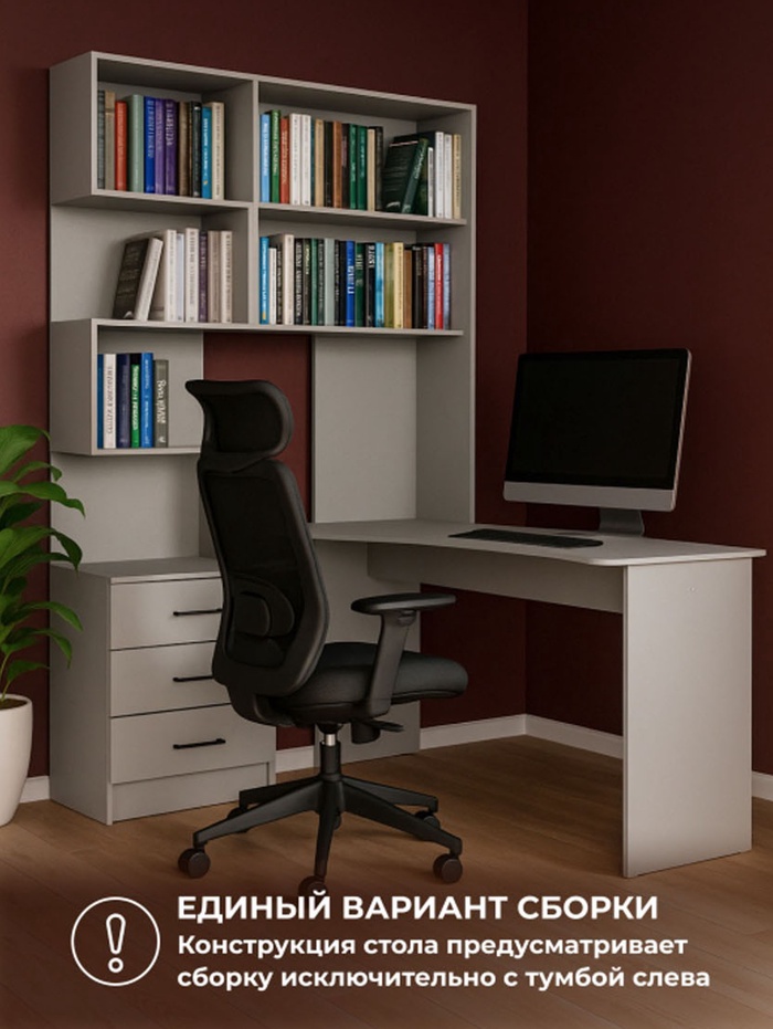 Стол компьютерный «Эльброни», правый, 1450×1280×2000 мм, цвет шиншилла серая