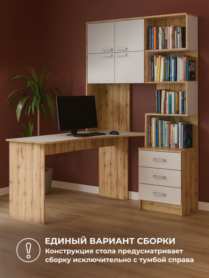 Стол компьютерный «Ганор», левый, 1450×1280×2000 мм, цвет дуб вотан/белый