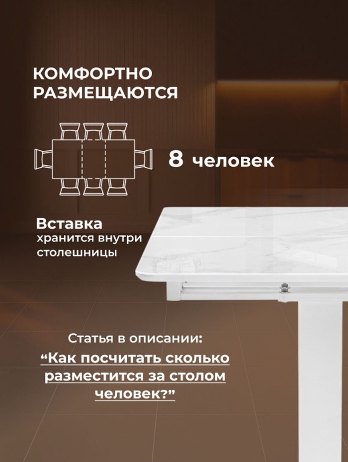 Технические характеристики Стол на тумбе кухонный раздвижной «Бугун», 1200(1600)×800×770 мм, цвет мрамор белый/белый