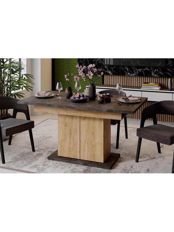 Стол на тумбе кухонный раздвижной «Детройт Тип 1», 1504(2014)×850×770 мм, цвет дуб крафт золотой/ателье тёмное