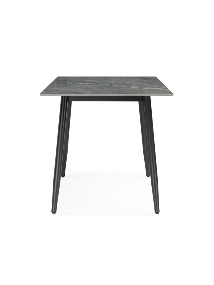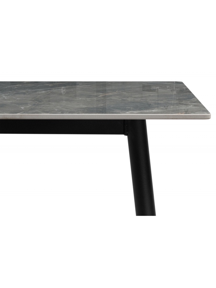 Элегантное и стильное решение для современной кухни или столовой. Стол выполнен в изысканном сочетании цветов: столешница из высококачественной керамики с эффектом серого мрамора и строгие чёрные металлические ножки создают благородный и сдержанный образ. Керамическая поверхность устойчива к царапинам, высоким температурам и загрязнениям, сохраняя безупречный вид на долгие годы.
