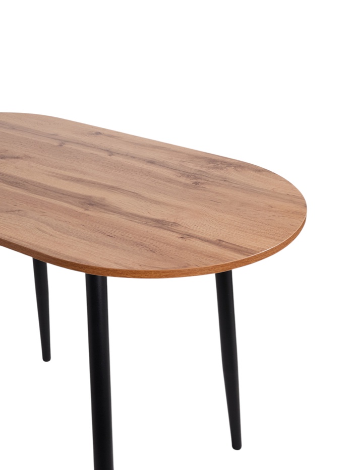 Современная модель в стиле лофт с овальной столешницей. Сочетание металлических ножек и столешницы из ЛДСП придаёт изделию стильный внешний вид и делает его практичным для повседневного использования.