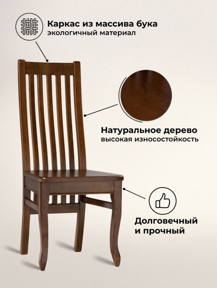- Натуральные материалы: стул полностью изготовлен из натурального бука, что гарантирует экологичность, прочность и долговечность.