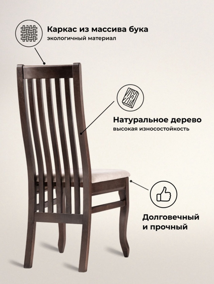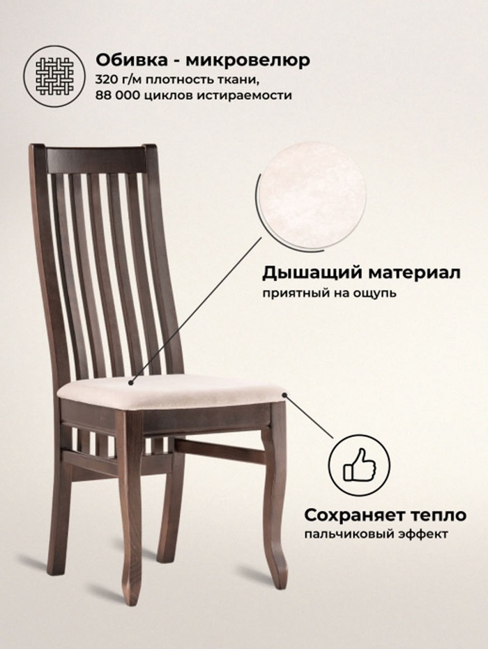 Технические характеристики Стул деревянный Арлет ткань Tenerife latte / венге коричневый