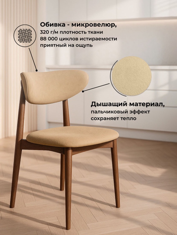 Стул мягкий для кухни «Фарго», обивка велюр, цвет бежевый/миланский орех
