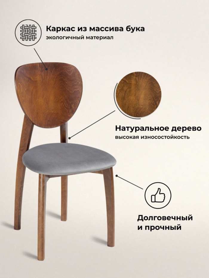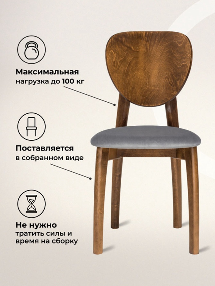 Технические характеристики Стул мягкий для кухни «Окава», обивка микровелюр, цвет серый камень/миланский орех