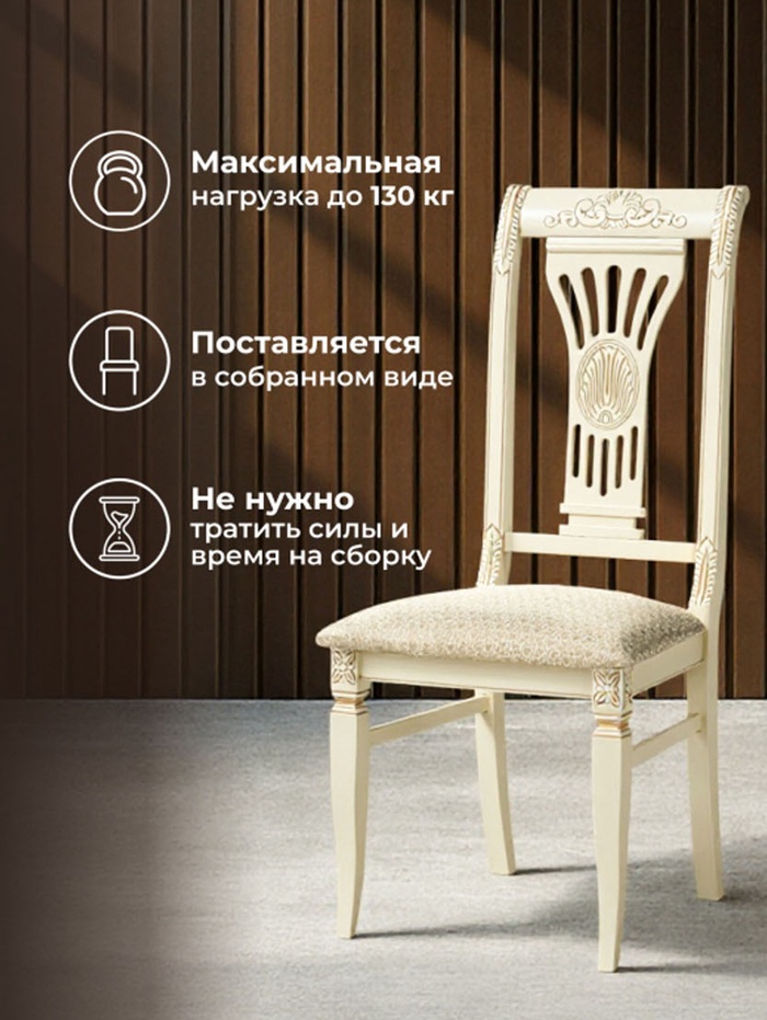 Технические характеристики Стул мягкий для кухни Roy, обивка жаккард, цвет слоновая кость /патина золото