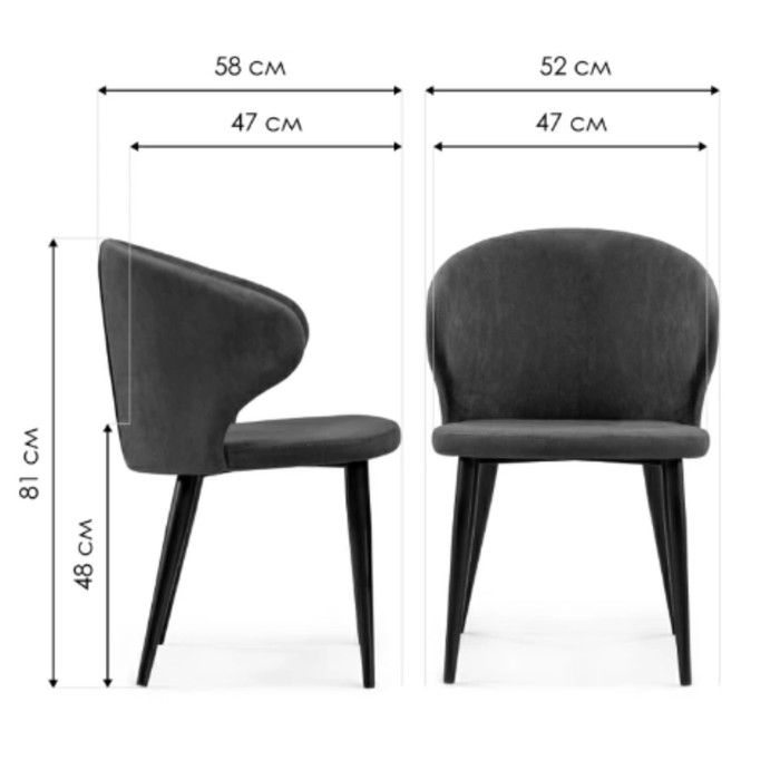 Технические характеристики Стул на металлокаркасе Алсисар металл/велюр, черный/серый 52x58x81 см