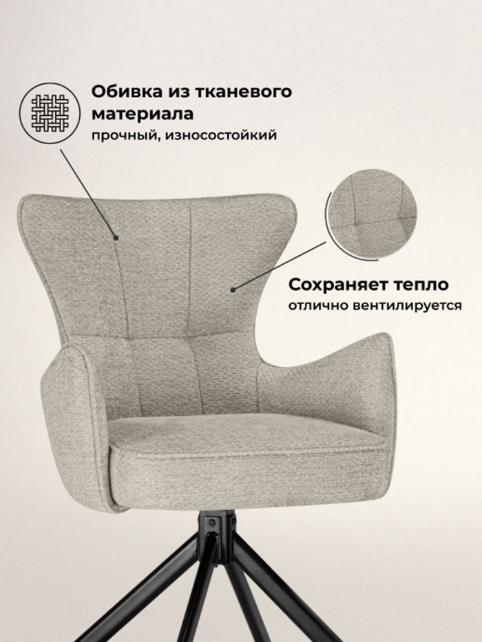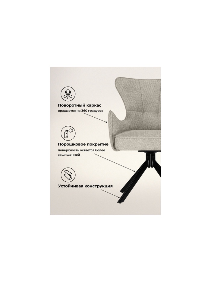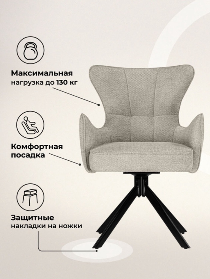 Современный и функциональный стул для кухни, столовой или гостиной. Модель выполнена в стильном сочетании цветов: нежный бежевый и строгий чёрный создают элегантный контраст, придающий интерьеру утончённость и современный характер. Стул оснащён поворотным механизмом, обеспечивающим удобство и свободу движений. Надёжный металлический каркас обеспечивает повышенную устойчивость и долговечность, выдерживая нагрузку до 130 кг.