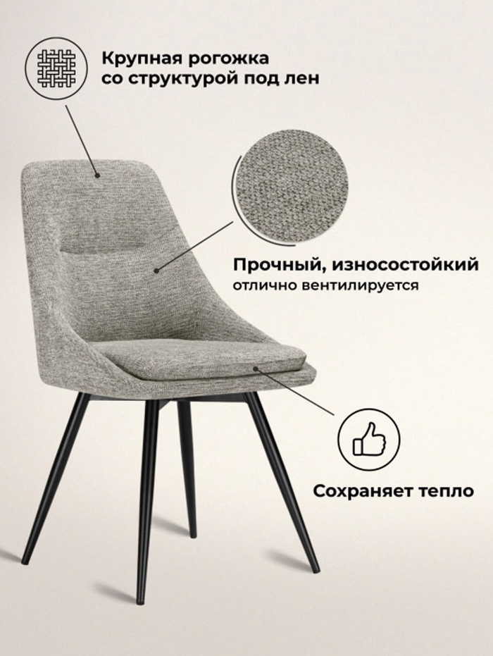 - Практичная обивка: рогожка устойчива к износу, легко очищается и сохраняет внешний вид на протяжении всего срока эксплуатации.