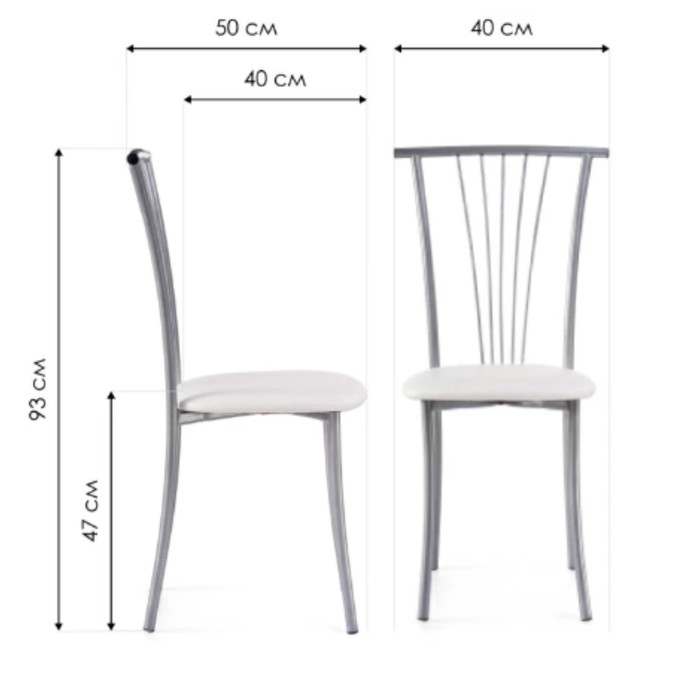 Технические характеристики Стул на металлокаркасе Grigori металл/экокожа, серый/белый 40x50x93 см