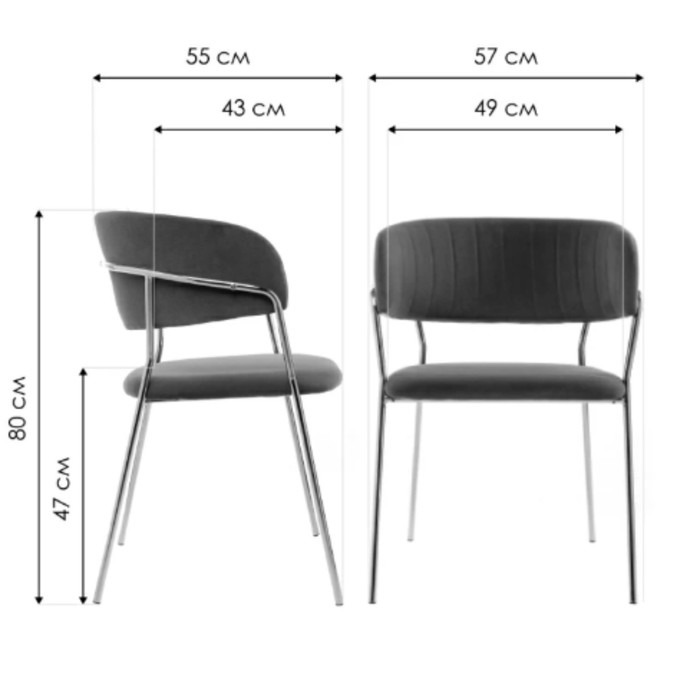 Технические характеристики Стул на металлокаркасе Kamelia металл/велюр, золотой/серый 57x55x80 см