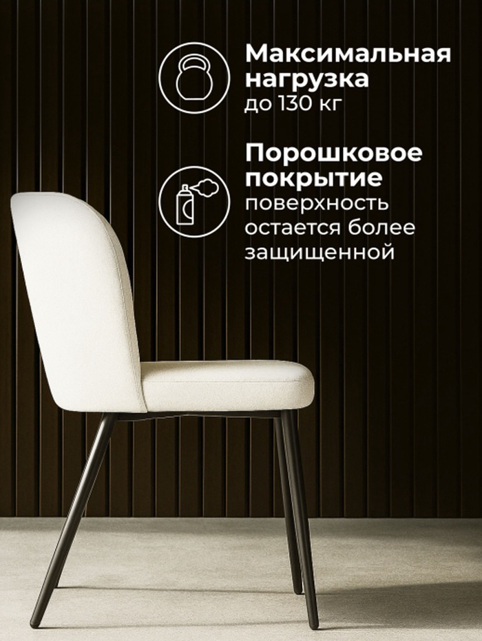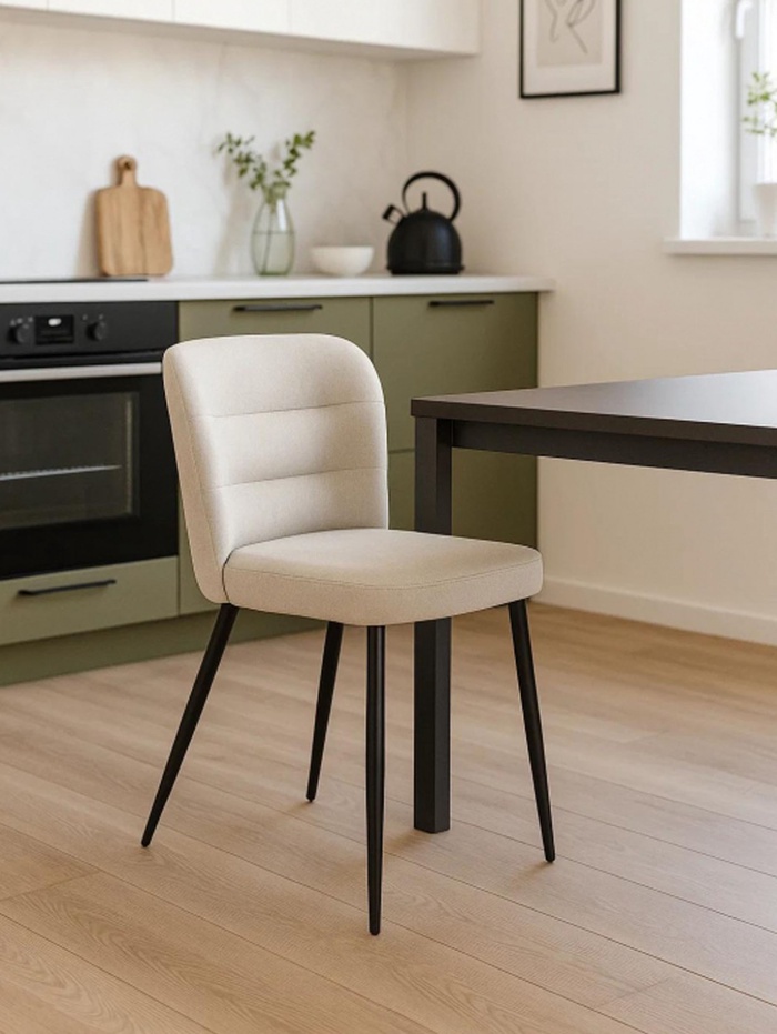 Элегантный и уютный стул для кухни, столовой или гостиной. Модель выполнена в стильном сочетании цветов: нежный светло-бежевый и строгий чёрный создают утончённый контраст, наполняющий интерьер теплом и современным шармом. Надёжный металлический каркас обеспечивает повышенную устойчивость и долговечность, выдерживая нагрузку до 130 кг.