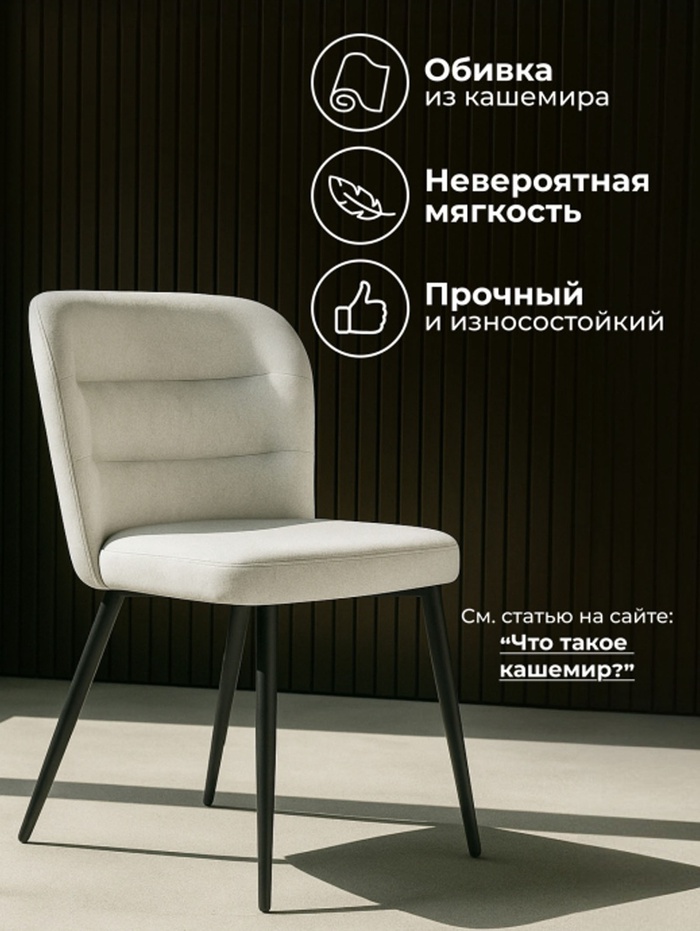 - Мягкая обивка: ткань кашемир придаёт стулу уютный вид и обеспечивает комфорт во время длительных обедов и дружеских посиделок.
