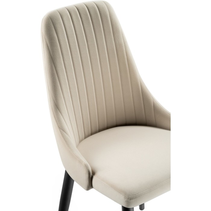 Элегантный и прочный стул для кухни, столовой или гостиной. Модель выполнена в стильном сочетании цветов: благородный бежевый велюр и строгий чёрный металлокаркас создают утончённый и сдержанный образ, наполняющий интерьер теплом и элегантностью. Надёжный металлический каркас обеспечивает повышенную устойчивость и долговечность, выдерживая нагрузку до 130 кг.