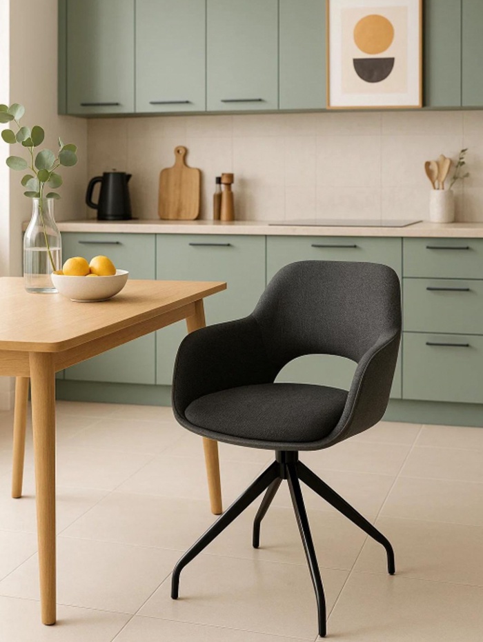 - Организация обеденной зоны: поворотный стул обеспечивает дополнительный комфорт во время обедов и общения.
