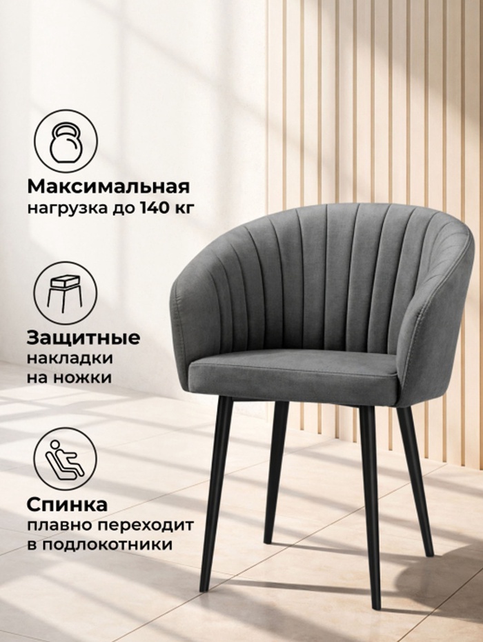Технические характеристики Стул мягкий «Моншау», на металлокаркасе, обивка marseille 11, цвет серый/чёрный
