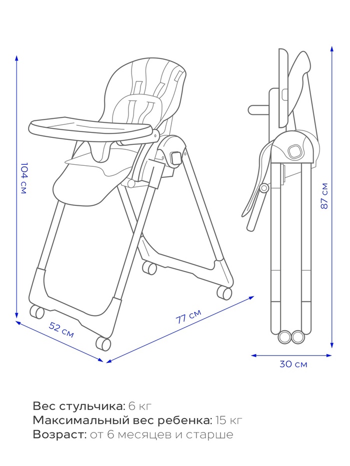 Технические характеристики Стульчик для кормления детский, Rant Манго, графит