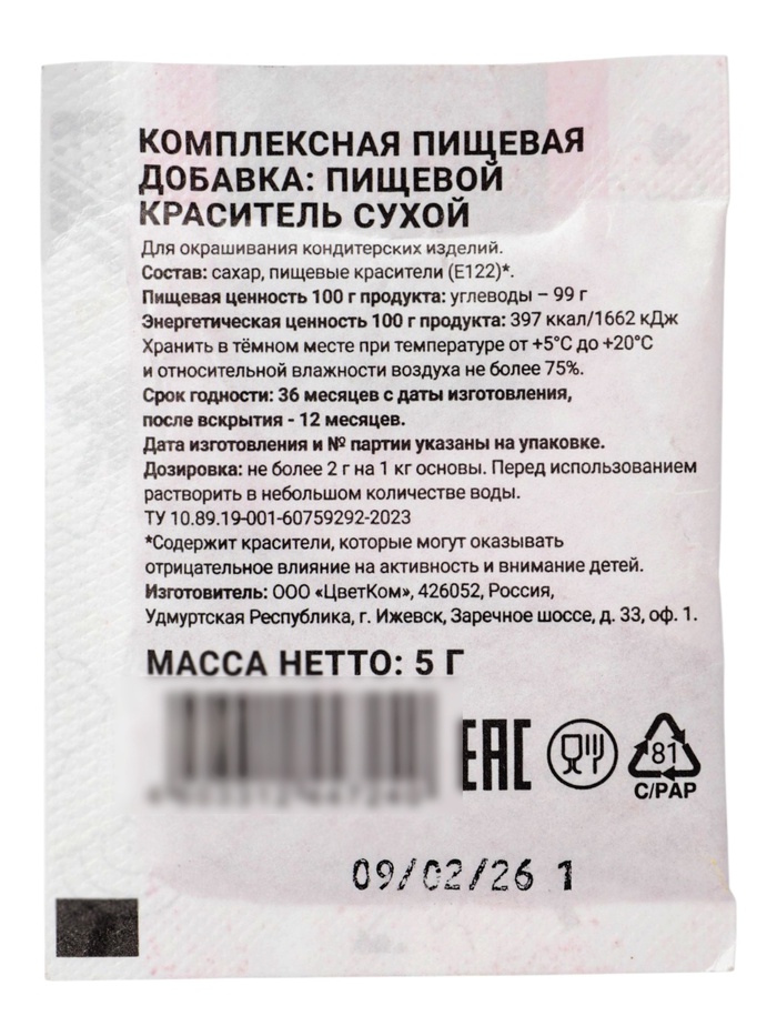 Сухой водорастворимый каситель beze розовый 5г