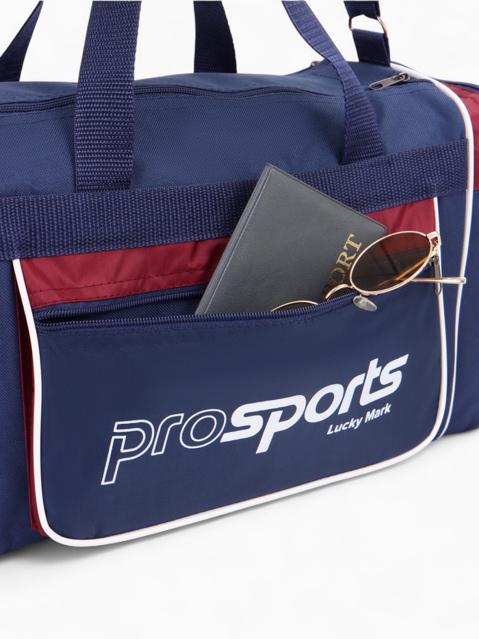 Сумка спортивная Lucky Mark, на молнии, 3 наружных кармана, длинный ремень, синяя/бордовая
