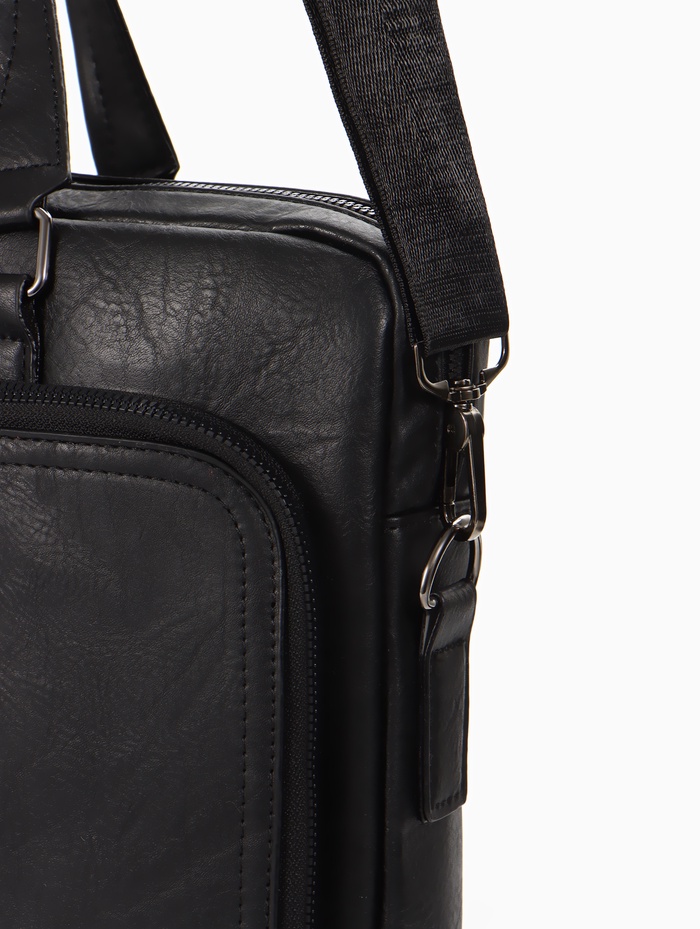 Сумка деловая, мужская, на молнии, длинный ремень, 38×8×29 см, чёрная