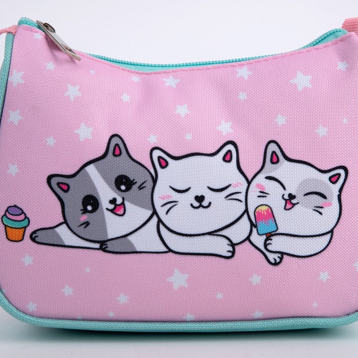 Сумка детская для девочки, текстильная, «Три котёнка», 4 см х 17 см х 13 см