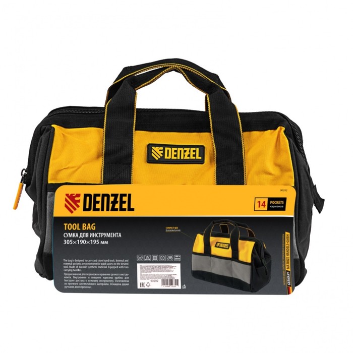 Сумка для инструмента DENZEL 90292, 305×190×195 мм, 14 карманов