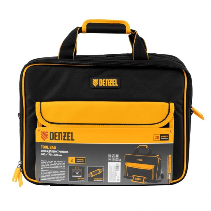 Сумка для инструмента DENZEL 90295, 28 карманов, наплечный ремень, 400×170×300 мм