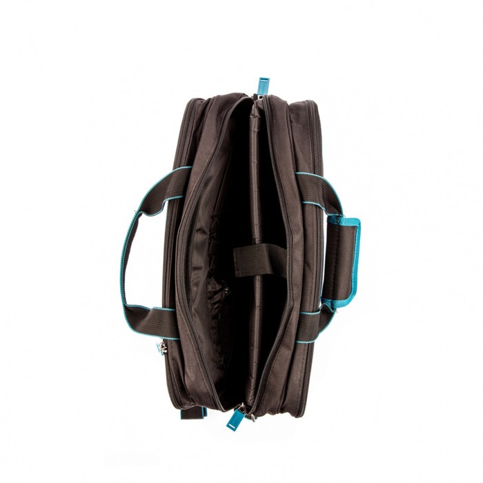 В данной модели предусмотрен отсек для ноутбука с диагональю экрана 15″ и документов формата А4. Сумка оснащена ручками и плечевым ремнём.