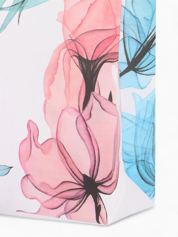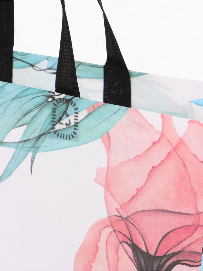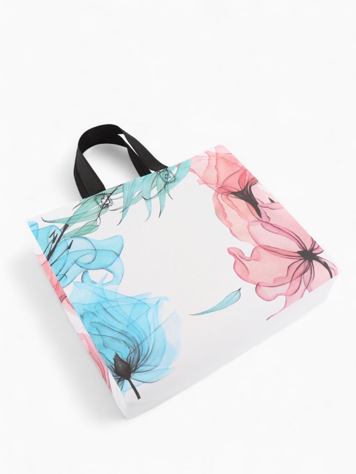 Разноцветный шопер с цветочным принтом создаёт яркий акцент в повседневном образе. Эта сумка добавляет настроения обычным прогулкам и походам за покупками.