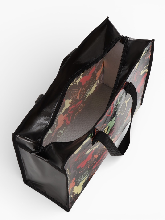Сумка хозяйственная «Бабочки», на молнии, 40×15×30 см, чёрная