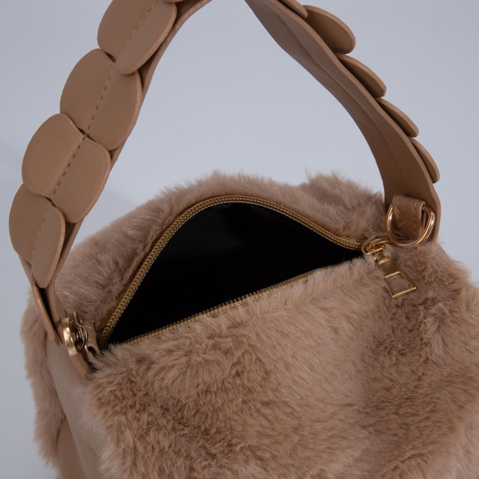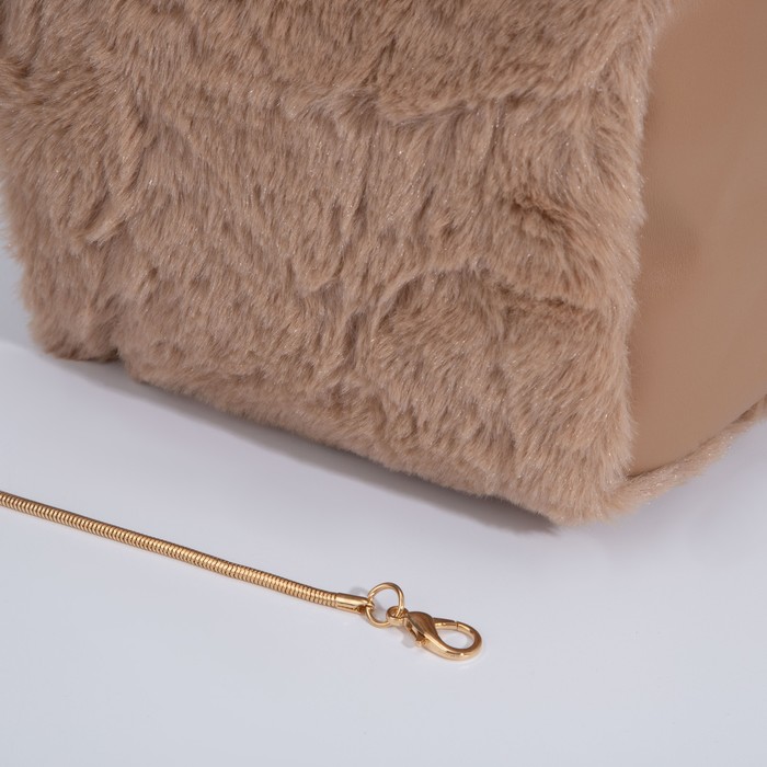 Сумка женская, с мехом, с цепочкой, на молнии, коричневая