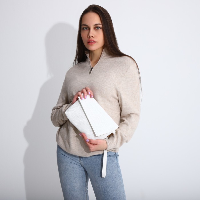 Сумка-клатч на магните, ремешок на запястье, цвет белый