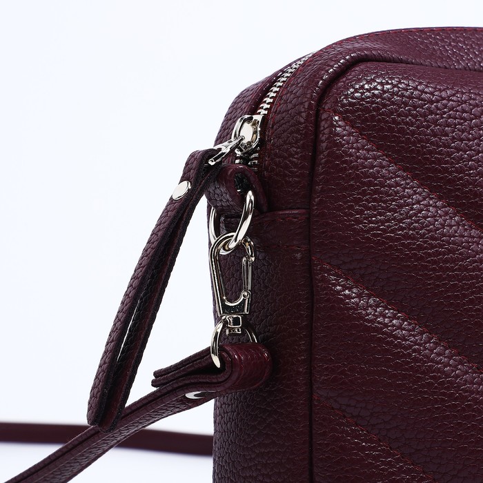 Глубокий бордовый цвет добавляет образу выразительности, а серебристая фурнитура вносит нотку изысканности.