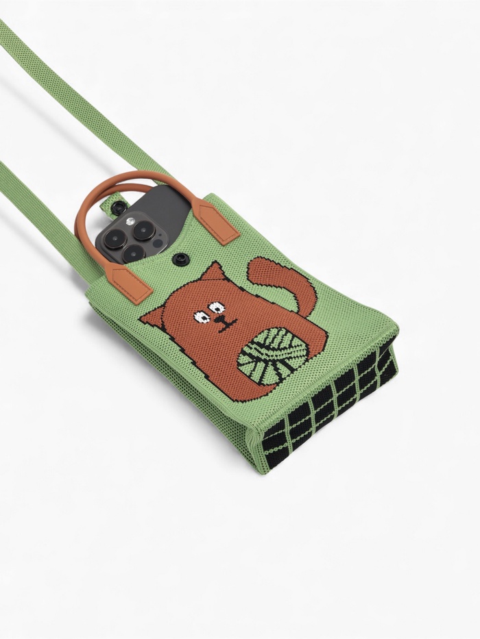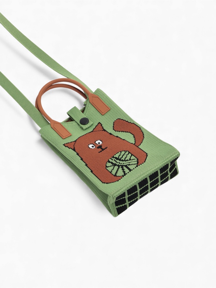 Зелёная сумочка с котом для телефона становится верным спутником юных модниц и взрослых женщин. Выразительный рисунок в виде кошки на этой компактной модели обращает внимание и добавляет нотку игривости вашему образу. С такой сумочкой даже обычные прогулки становятся особенными.