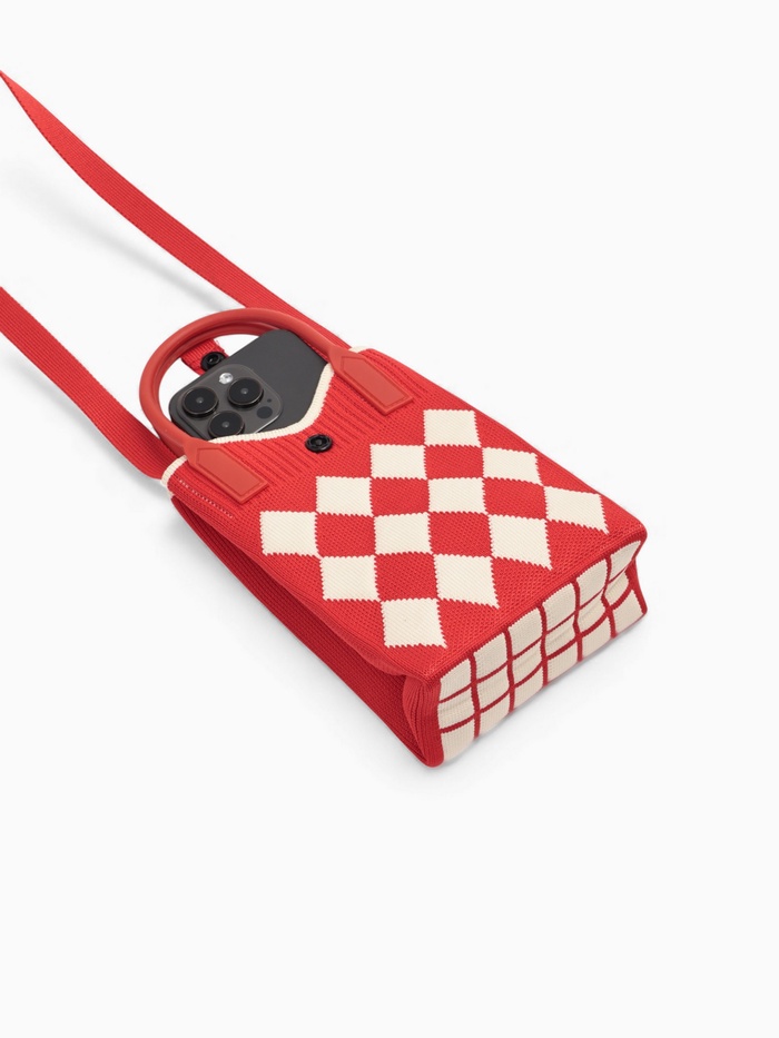 Сумка для телефона «Ромбы», на кнопке, с длинным ремнём, красная