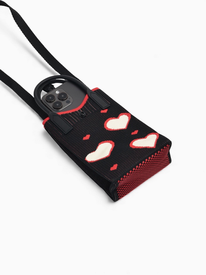 Сумка для телефона «Сердечки», на кнопке, с длинным ремнём, чёрная