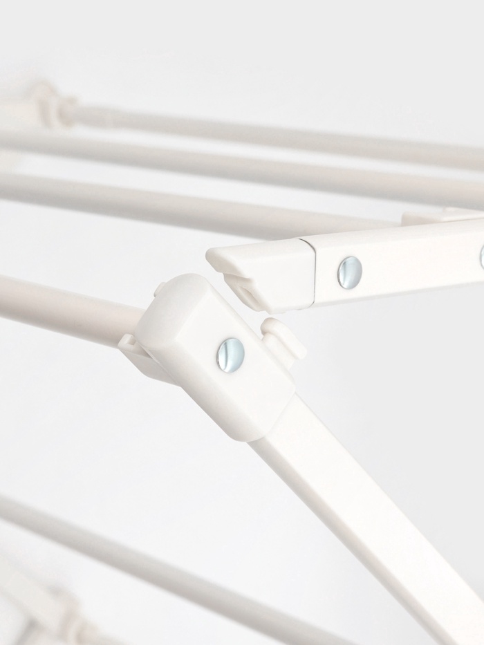 - Складной механизм позволяет компактно убрать сушилку в шкаф или на балкон.