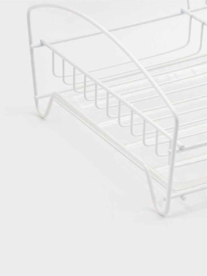 Сушилка для посуды с поддоном — практичный помощник на кухонной столешнице. Её компактные размеры (39×25×12 см) и белоснежный металлический каркас делают её незаметной, но крайне полезной: тарелки, кружки и столовые приборы сохнут быстро, а лишняя влага остаётся в съёмном поддоне, не растекаясь по поверхности.