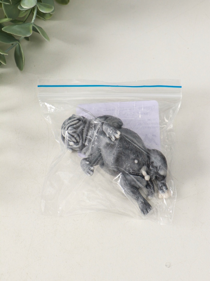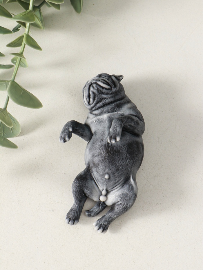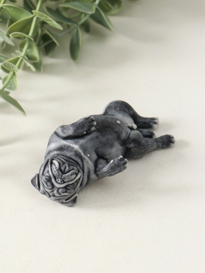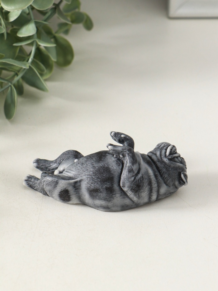 Эта маленькая фигурка лежащего на спине бульдога создаёт ощущение умиротворения и беззаботности. Она станет лаконичным дополнением интерьера или личным талисманом, напоминающим о простых радостях жизни.