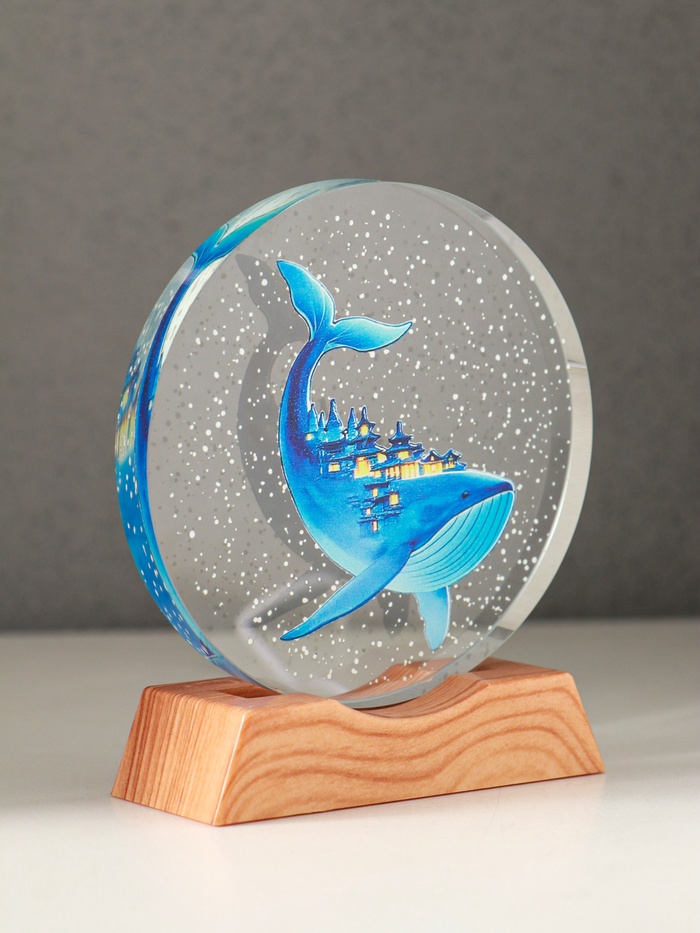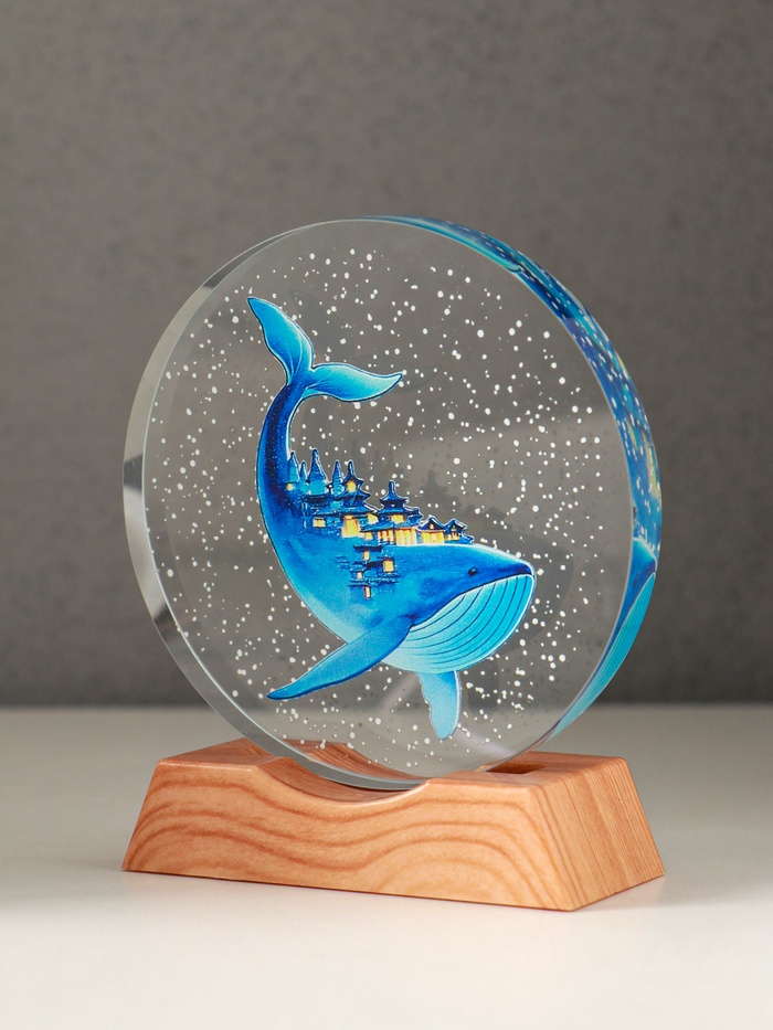 Эта голографическая фигурка создаёт в вашем пространстве волшебный портал в подводный мир. Внутри оптического стекла парит трёхмерное изображение кита, которое оживает и переливается всеми цветами радуги при включении подсветки. Идеальное решение для создания медитативной атмосферы в вечернее время.